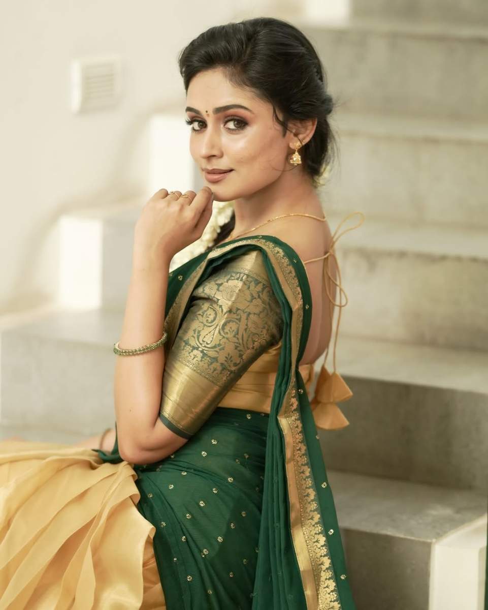 சிரிக்கும் சிலையழகு: நடிகை அனஸ்வர ராஜன்!