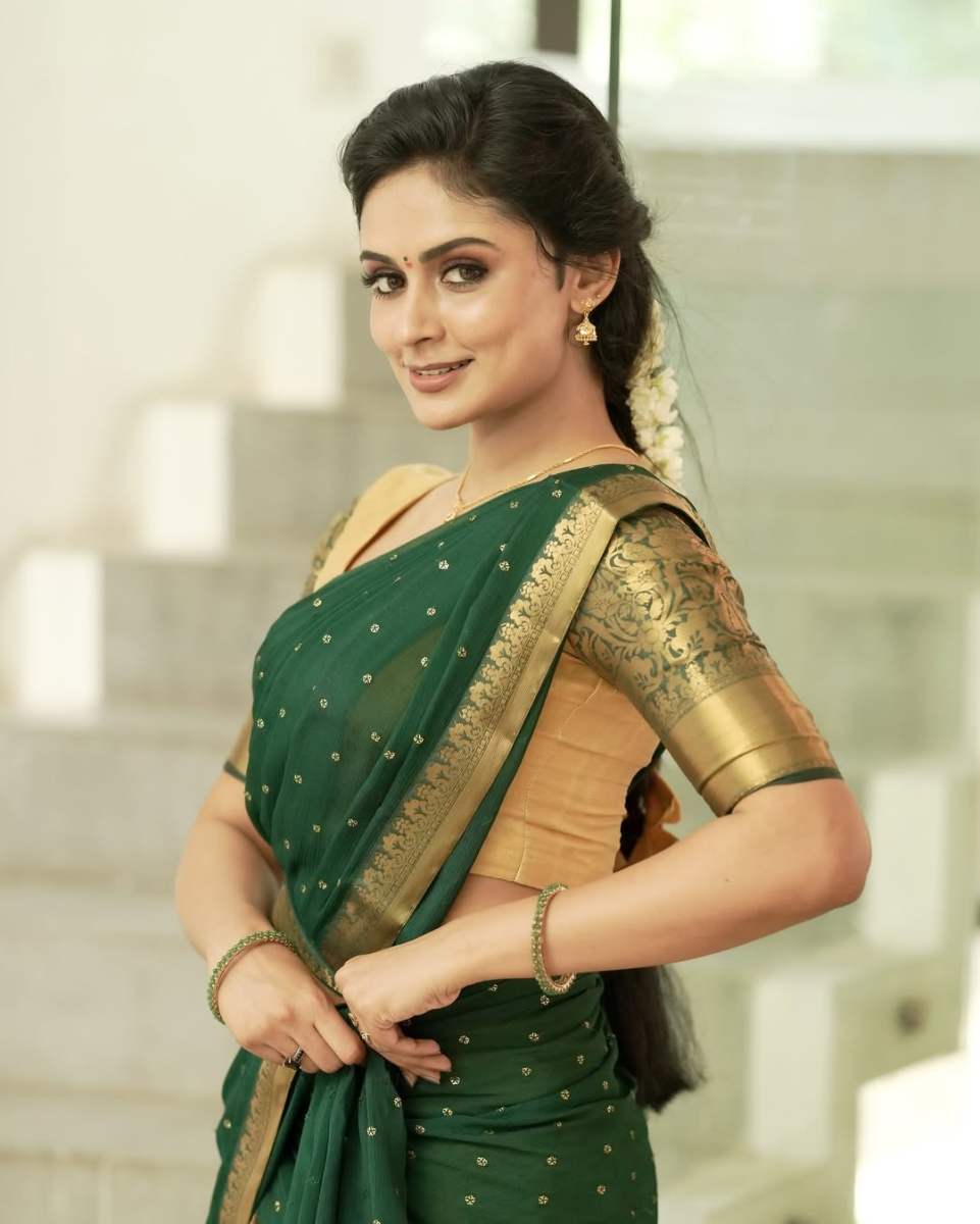 சிரிக்கும் சிலையழகு: நடிகை அனஸ்வர ராஜன்!