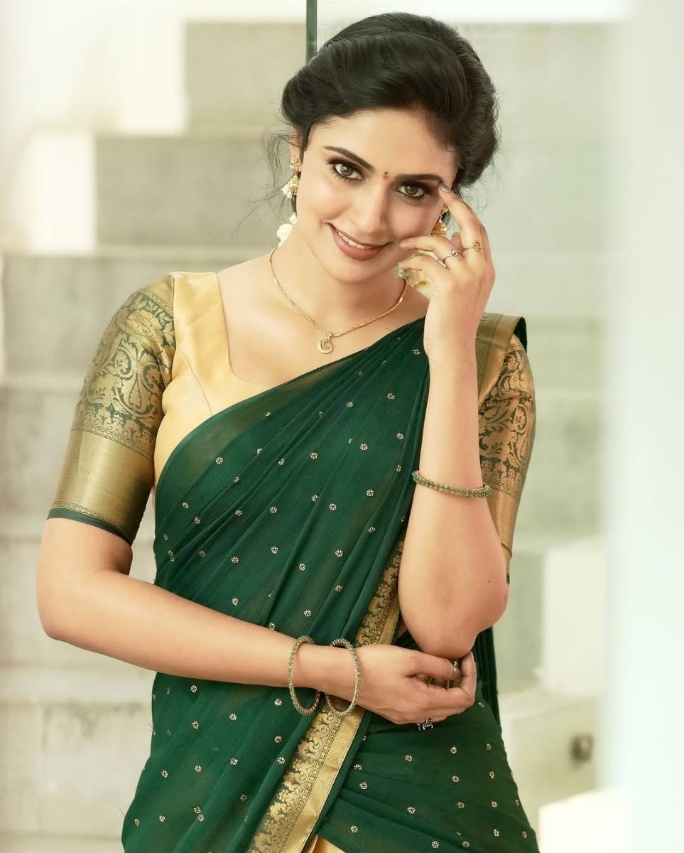 சிரிக்கும் சிலையழகு: நடிகை அனஸ்வர ராஜன்!