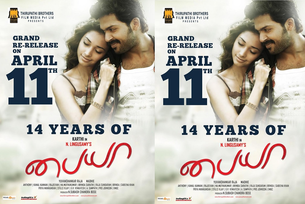 அந்த வகையில் இயக்குநர் N.லிங்குசாமி இயக்கத்தில் கார்த்தி நடிப்பில் கடந்த 2010ல் வெளியாகி சூப்பர் ஹிட்டான ‘பையா’ திரைப்படம் புதிய டெக்னாலஜி அடிப்படையில் டிஜிட்டல் தொழில்நுட்பத்திற்கு மாற்றப்பட்டு, வரும் ஏப்ரல் 11ஆம் தேதி ரீ ரிலீஸ் செய்யப்பட இருக்கிறது.