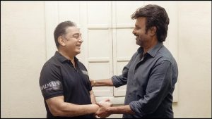 உலகநாயகன் கமல்ஹாசனைக் கண்ட சூப்பர்ஸ்டார் ரஜினிகாந்த் மகிழ்ச்சியில், அவரை கட்டித்தழுவிக் கொண்டார். இருவரும் தங்கள் அன்பைப் பரிமாறிக்கொண்டனர்.