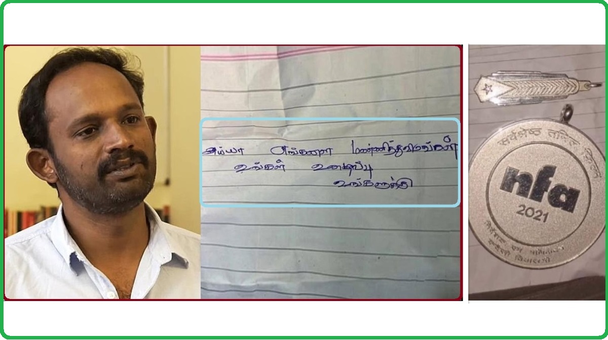 தகவலறிந்து மணிகண்டனின் வீட்டுக்கு வந்த காவல்துறையினர் தேசிய விருதுப் பதக்கங்களையும், அந்த கடிதத்தையும் கைப்பற்றி விசாரணை மேற்கொண்டு வருகின்றனர்.