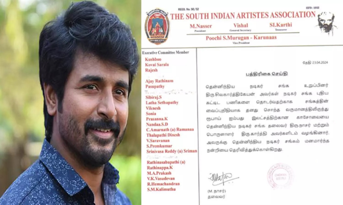 இந்த நிலையில், நடிகர் சிவகார்த்திகேயன், நடிகர் சங்கப் புதிய கட்டிடப் பணிகளைத் தொடர்வதற்காக 50 லட்சம் ரூபாய் வழங்கியுள்ளார்.