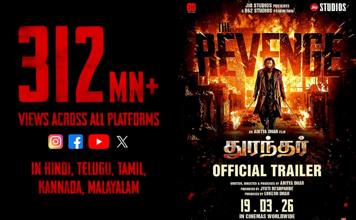 ஜியோ ஸ்டுடியோஸ் மற்றும் B62 ஸ்டுடியோஸ் தயாரித்துள்ள ‘துரந்தர் பழிவாங்கல்’ படத்தின் ட்ரைலர், வெளியான வெறும் 48 மணி நேரத்தில் அனைத்து தளங்களிலும் 312 மில்லியன் பார்வைகளைக் கடந்து புதிய சாதனை படைத்துள்ளது!