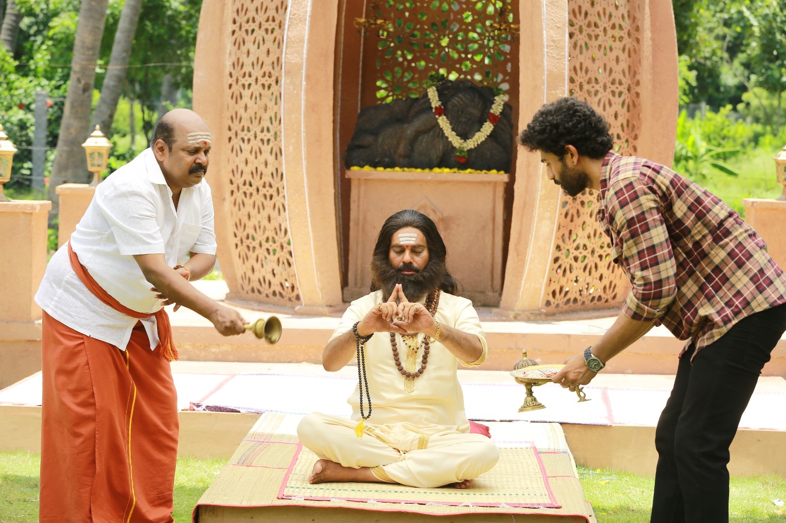 தான் இமயமலையில் இருந்து வந்த சாமியார் என்று எல்லோரையும் நம்பவைத்து, ஆசிரமத்தைக் கையில் எடுக்கிறான்.