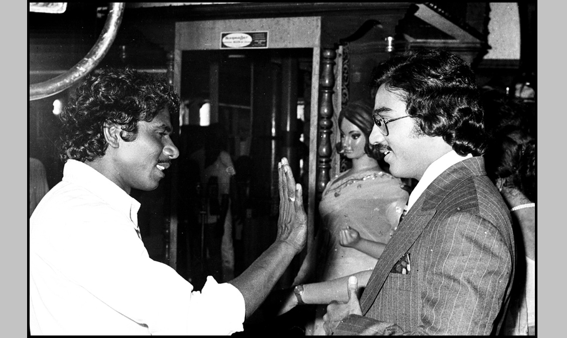 ‘சிகப்பு ரோஜாக்கள்’ படப்பிடிப்பின்போது ஜெமினி பிரிட்ஜ் துணிக் கடையில் எடுத்த புகைப்படம் இது. அதில் இயக்குநர் பாரதிராஜா மற்றும் நடிகர் கமல் ஆகியோர் இடம்பெற்றுள்ளனர்.