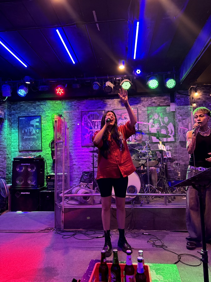 பரபரப்பான சூழ்நிலையும், நேரடியாக இசைக் குழுவின் இசை நிகழ்ச்சியை முழுமையாக ரசிக்கும் கூட்டமும் அங்கு இருக்க, மகிழ்ச்சி அடைந்த ஸ்ருதிஹாசன் அவர்களை ஊக்குவிப்பதற்காக மேடை ஏறினார்.