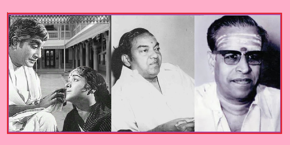 – என்ற வரிகளை டி.எம்.எஸ்., என்கின்ற நம் காலத்தின் கலைஞன் அழுத்தம் கொடுத்துப் பாடும்போது எவ்வளவு உயிர்த் துடிப்புக்கூடி விடுகிறது, இந்த எளிதில் மறக்க முடியாத எளிய வரிகளுக்கு!
